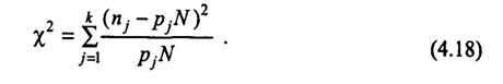 Эта статистика имеет χ2 - распределение с числом степеней свободы v=k-1-r, где r - число параметров закона распределения, оценки которых получены по выборке и использованы при вычислении χ2 (для закона распределения Пуассона r=1). Статистика χ2 принимает большие значения, когда экспериментальные данные не соответствуют гипотезе о пуассоновском распределении. В процессе проверки гипотезы необходимо: