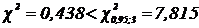Полученное значение χ2=0,438 является реализацией случайной величины, подчиненной χ2 — распределению с v=5-1-1=3.