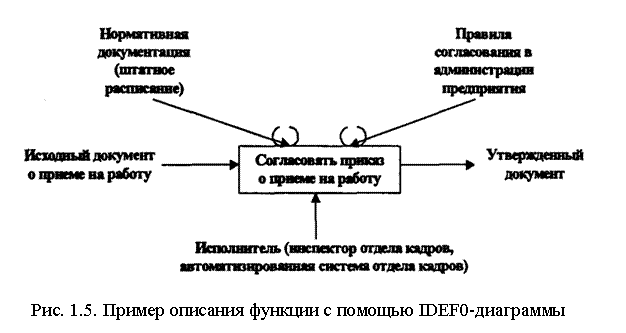 На рис. 1.5 дан пример контекстной диаграммы (диаграммы верхнего уровня) описания функции "Согласование приказа о приеме на работу".