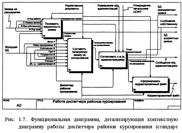 1.7.4.2. Пример построения функциональной модели диспетчера районов курсирования грузовых вагонов Дирекции совета по железнодорожному транспорту