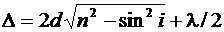 Оптическая разность хода световых волн, отраженных от верхней и нижней поверхностей тонкой плоскопараллельной пленки, находящейся в воздухе