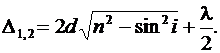 Результат интерференции зависит от оптической разности хода D интерферирующих лучей 1 и 2, другими словами, от числа полуволн l/2, укладывающихся на оптической разности хода: