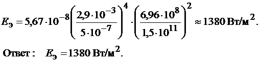 Для расчета интенсивности солнечного света J воспользуемся результатом решения задачи № 15 из раздела «Тепловое излучение»: J = Eэ = 1380 Вт/м2.