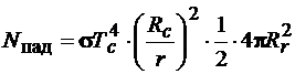 Если учесть, что к Солнцу обращена половина поверхности частицы, то на поверхность частицы падает мощность солнечного излучения, равная