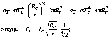 Дано: r = 1,5.1011 м Тс = 6000 К Rс = 6,96.108 м l = 500 нм | Решение Частица – серое тело, следовательно, ее поглощательная способность одинакова для всех длин волн и при данной температуре частиц аl,Т = аT . Так как температура частицы постоянна во всех ее точках, соблюдается условие равновесия: |