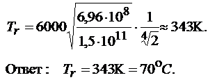 Задача 16. Внутри солнечной системы на том же расстоянии от Солнца, как и Земля, находится частица сферической формы. Полагая Солнце абсолютно черным телом с температурой Тс = 6000 К и что температура частицы во всех ее точках одинакова, определить ее температуру, считая частицу серым телом.