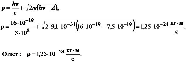 Задача 18. Фотон с энергией 10 эВ падает на серебряную пластину и вызывает фотоэффект. Определить импульс, полученный пластиной, если принять, что направления движения фотона и фотоэлектрона лежат на одной прямой, перпендикулярной поверхности пластин.