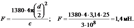 где P – давление солнечного света на поверхность спутника, S – площадь поверхности спутника, причем мы учли, что спутник повернут к солнцу только половиной поверхности.