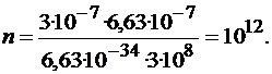 Дано: l = 0,663 мкм = 6,63 .10–7 м P = 0,3 мкПа = 3 .10–7 Па r = 0 | Решение Давление света на зачеркнутую поверхность (r=0) равно P=J/c . По определению интенсивность излучения равна |