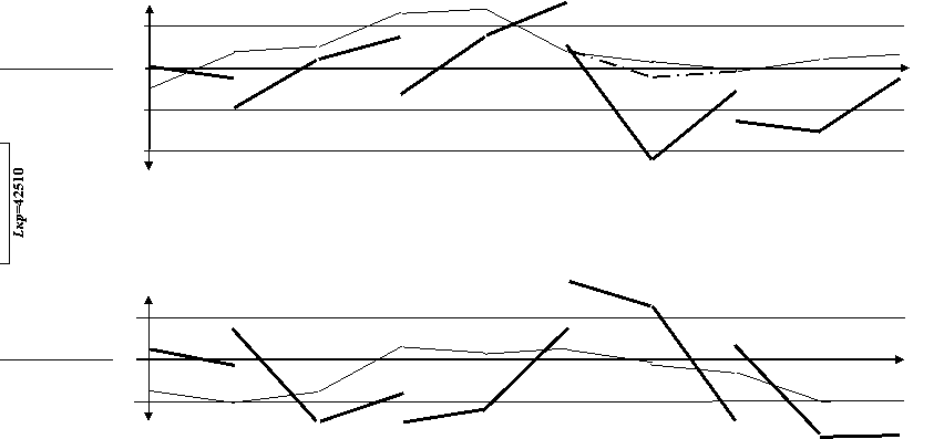 1. Фактическое положение: рельса; балки. 2. Линия рихтовки: рельса; балки. | +y +10 0 Ряд Б -10 -20 | |||||||||