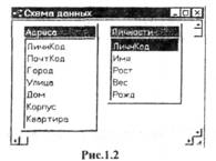 4.2. Просмотреть схему данных, состоящую из двух несвязанных таблиц Личности и Адреса, который входят в состав базы данных База1. Установить размеры индивидуальных окон для каждой таблицы и для всей схемы данных такими, как показаны на рис. 1.2.