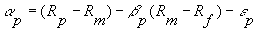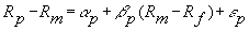 где: Rp – доходность портфеля фонда Rm – доходность рыночного индекса Rf – доходность безрискового инструмента ep – случайная погрешность Rm - Rf – избыточная доходность портфеля фонда можно найти значение альфы Йенсена: