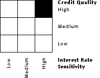 Fixed-Income Style Box | Матрица инвестиционного стиля фонда, специализирующегося на бумагах с фиксированным доходом В матрице инвестиционного стиля фонда, специализирующегося на бумагах с фиксированным доходом и работающего либо на внутреннем, либо на международном рынках, представлены два основных параметра бумаг с фиксированным доходом: чувствительность к изменению процентных ставок и кредитное качество. Morningstar подразделяет фонды, специализирующиеся на бумагах с фиксированным доходом, на три группы в зависимости от их чувствительности к процентным ставкам на основе сроков погашения (краткосрочные, среднесрочные и долгосрочные) и на три группы в зависимости от кредитного качества бумаг (высокое, среднее и низкое). Эта классификация графически отражает среднюю эффективную дюрацию и кредитное качество портфеля фонда. Так же, как и в случае с матрицей инвестиционного стиля фонда, специализирующегося на акциях, существует 9 различных комбинаций стиля. Однако для облигационных фондов они варьируются от фондов краткосрочных облигаций с высоким кредитным качеством (наиболее "безопасных" фондов) до фондов долгосрочных облигаций с низким кредитным качеством (наиболее волатильные фонды). По горизонтальной оси матрицы отображается средний срок погашения облигаций в портфеле фонда на основе показателя средней эффективной дюрации. Эта цифра рассчитывается путем присвоения весов каждому виду облигаций в зависимости от размера вложений фонда в эти бумаги. Показатель дюрации портфеля позволяет более ясно представить его действительную степень чувствительности к процентным ставкам. Фонды со средней эффективной дюрацией менее 3,5 лет классифицируются как краткосрочные (short-term). Фонды с облигациями, чья средняя эффективная дюрация превышает 3,5 года, но меньше или равна 6 годам, классифицируются как среднесрочные (intermediate), а фонды со средней эффективной дюрацией, превышающей 6 лет, считаются долгосрочными (long term). (Для фондов муниципальных облигация диапазон для присвоения классификации немного отличается: менее 4,5 лет – краткосрочные, от 4,5 до 7 лет – среднесрочные, более 7 лет – долгосрочные). Если данные о дюрации недоступны, Morningstar использует показатели средних эффективных сроков погашения. Хотя дюрация является более точным индикатором, сроки погашения также могут быть использованы для определения степени волатильности фонда в зависимости от изменений процентных ставок. Фонды облигаций, имеющие средний эффективный срок погашения менее 4 лет квалифицируются как краткосрочные, от 4 до 10 лет – среднесрочные и более 10 лет – долгосрочные. По вертикальной оси матрицы расположены рейтинги кредитного качества портфеля фонда. Фонды, имеющие средний кредитный рейтинг AAA или AA классифицируются как фонды с высоким кредитным качеством. Облигационным портфелям со средним рейтингом A или BBB присваивается рейтинг среднего кредитного качества, а фонды со средним кредитным рейтингом BB и ниже причисляются к категории фондов с низким кредитным качеством. Для осуществления расчетов американские государственные облигации рассматриваются как облигации с рейтингом AAA, нерейтингуемые муниципальные облигации обычно классифицируются как облигации с рейтингом BB, а все остальные нерейтингуемые облигации относятся к категории долговых обязател