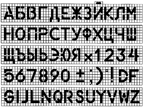 Рекомендуемые очертания шрифта для нанесения маркировки