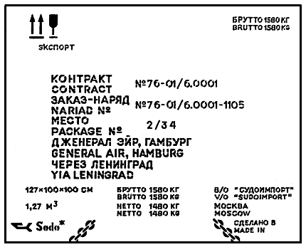 Примеры расположения маркировки на грузах, поставляемых на экспорт