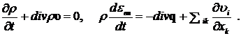 Замкнутая система уравнений сохранения массы, импульса и внутренней энергии вязкой жидкости включает также уравнение непрерывности движения (6.3.5) и уравнение сохранения внутренней энергии (6.7.10) с заменой в нем