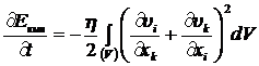 Определим изменение во времени кинетической энергии движения несжимаемой вязкой жидкости за счет ее диссипации в пространстве. Рассмотрим некоторый неподвижный в пространстве объем
