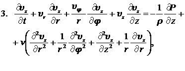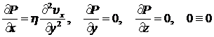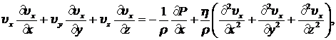 Из уравнений (8.1.3) и (8.1.4) видно, что уравнение Навье-Стокса отличается от уравнения Эйлера (7.1.2) дополнительными слагаемыми в правой части, учитывающими вязкость жидкости.