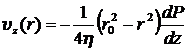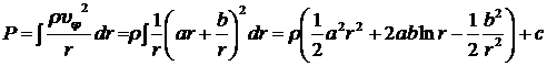 После интегрирования данного уравнения по r и выбора в качестве произвольной постоянной интегрирования давления жидкости
