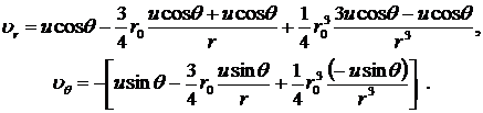 скорости движения индивидуальной частицу при медленном обтекания шара потоком вязкой несжимаемой жидкости определяются соотношениями: