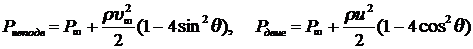 в плоскости наибольшего его поперечного сечения распределение давления имеет вид: