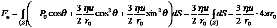 После подстановки распределения давления P по поверхности шара (8.4.24) и значений
