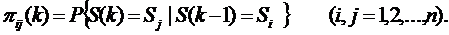 k - м шаге. Вероятности перехода можно записать в виде матрицы перехода π размерности n × n: