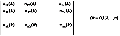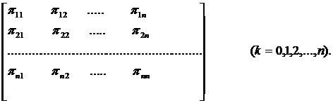 Матрица безусловных вероятностей состояний на шаге k определяется