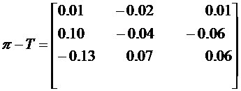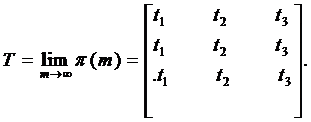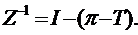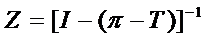 Здесь I – единичная матрица; π – матрица перехода; Т – матрица финальных вероятностей; E – единичная матрица (все элементы матрицы E равны единице); Zdg – матрица, получающаяся из матрицы Z обнулением вне диагональных элементов; D – диагональная матрица с элементами, равными обратным значениям элементов диагонали матрицы финальных вероятностей T.