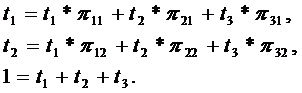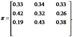 Процесс в системе описывается цепью Маркова. Матрица перехода имеет вид: