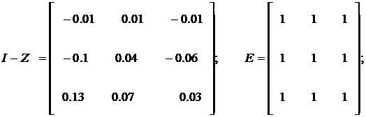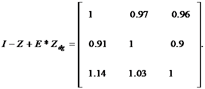 Определим матрицы I − Z, E * Z dg. Получим: