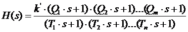 Перемножая полученные передаточные функции, получим передаточную функцию объекта: