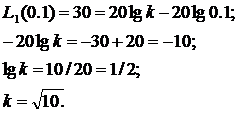 Используем последнее выражение для определения k, подставим значение характеристики при частоте w = 0.1: