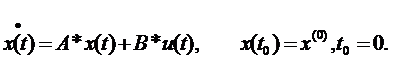 Здесь А и В – заданные матрицы чисел размеров n×n и n×m соответственно; x(t) – вектор состояния, вектор фазовых координат размерности n×1; u(t) – вектор управления размерности m×1.