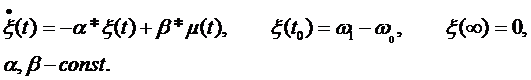 Объект состоит из двигателя постоянного тока, управляемого входным напряжением μ(t) с угловой скоростью вала ξ(t). Система описывается скалярным дифференциальным уравнением состояния