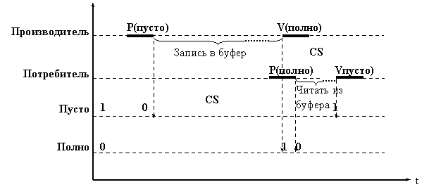 Рис. 17. Временная диаграмма синхронизации процессов "Производитель-Потребитель"