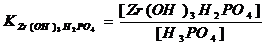 ZrO2 + H2O + H3PO4 = Zr(OH)3H2PO4 (3)