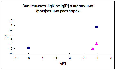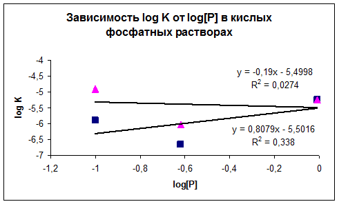 Рис. 5.4. Зависимость log K от log [P] в кислых фосфатных растворах: