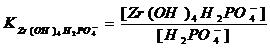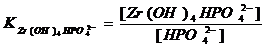 · в щелочных растворах, содержащих фосфаты, вероятно, образование Zr(OH)4HPO42-, так как константы равновесия для данной реакции образования соответствующего комплекса в двух различных растворах при различном значении pH показали высокую сходимость;