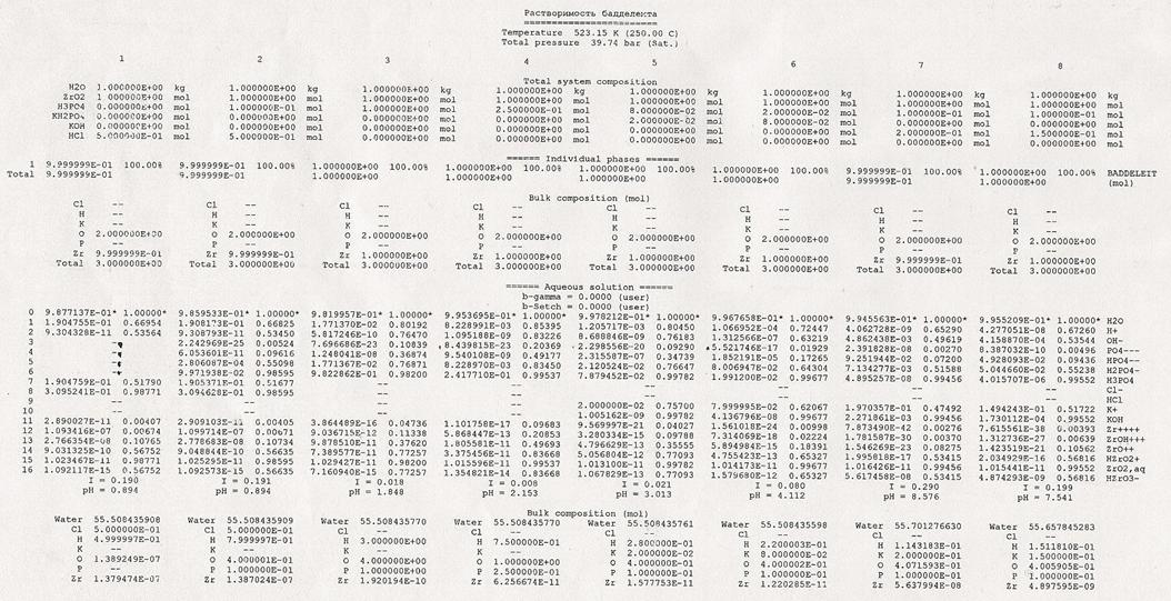 Приложение 2. Растворимость бадделеита при 250 С, рассчитанная с помощью программы Gibb