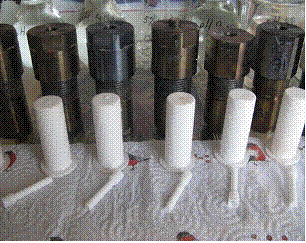 Опыт проводили в автоклавах из титанового сплава ВТ-8 с фторопластовыми вкладышами. Твердая фаза помещалась внутрь вкладыша во фторопластовых чашечках на ножках. Для обеспечения герметичности использовали фторопластовые прокладки, которые вырезали из ленты точно по размеру обтюраторов для каждого автоклава индивидуально. Общий вид автоклава изображен на рисунке 5.3.