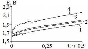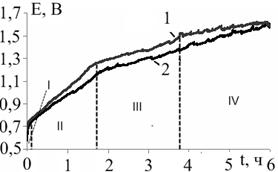 во времени при анодной гальваностатической поляризации