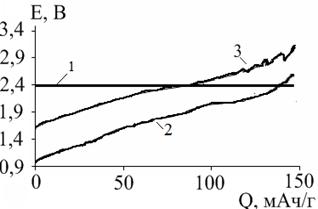 в гальваностатическом (50 мА/г) и потенциостатическом (2,4 В) режимах