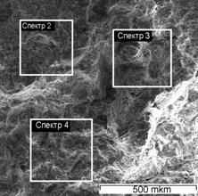 Для изготовления комбинированного сорбента использовали ТРГ с насыпной плотностью 2-3 г/дм3. Однородность распределения компонентов и углерода по объему (сколу) гранулы подтверждена электронно-микроскопическим и микрохимическим анализами (рис. 10). Сравнительные исследования сорбционной способности глауконита и композита глауконита с ТРГ выявили, что комбинированный сорбент имеет большую степень извлечения: по железу (II) – в 1,25 раза, по марганцу (II) – в 1,16 раза, по сероводороду – в 1,9 раза.