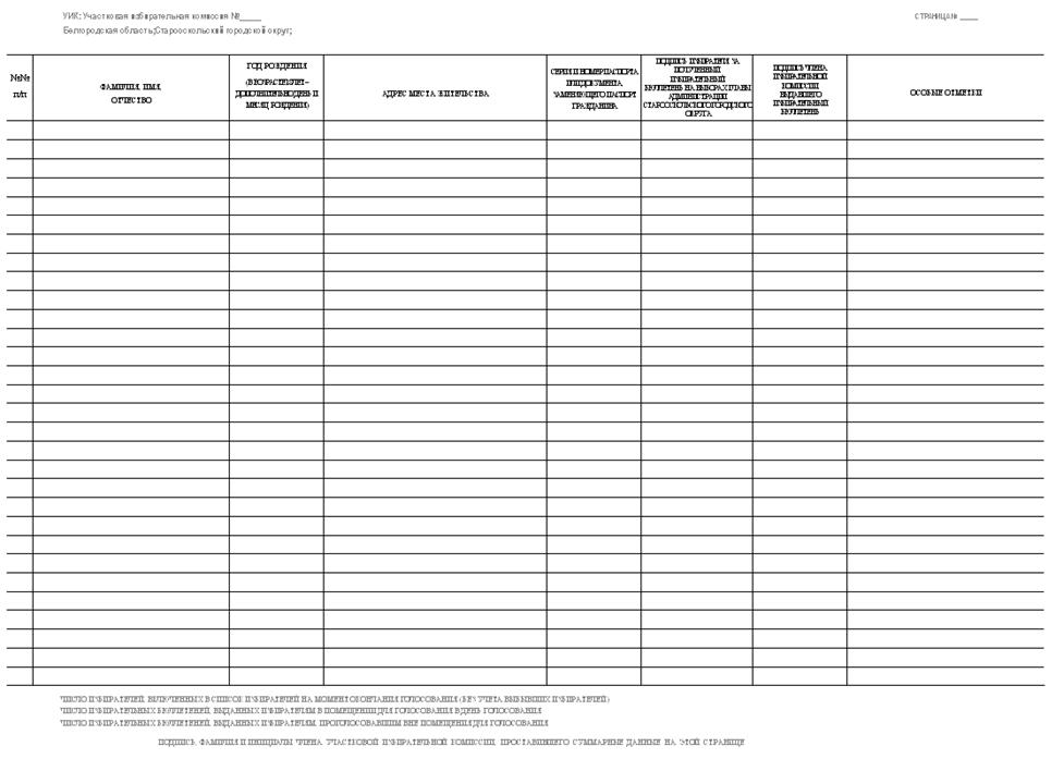 ИЗБИРАТЕЛЬНЫЙ УЧАСТОК № _______________ | СТРАНИЦА №__ |