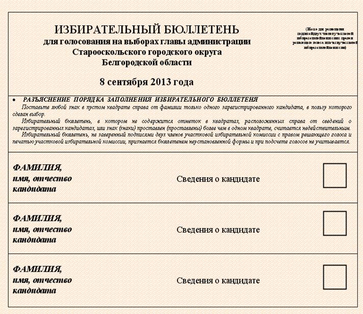 избирательных бюллетеней для голосования на выборах главы администрации Старооскольского городского округа Белгородской области.
