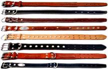 Самыми распространёнными остаются кожаные ошейники (прил.№2 рис.47). Изготовленные из натуральной кожи или кожзаменителя, такие ошейники долговечны, надёжны и доступны по цене. Хотя можно встретить и дорогие, эксклюзивные модели из выделанной кожи с украшениями. Такие модели являются декоративными. Хороший кожаный ошейник не трескается на морозе, не натирает кожу собаки, не растягивается и хорошо держит форму.