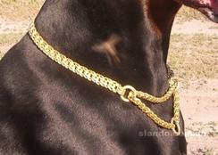 Другой тип металлических ошейников – сделанные из одной или нескольких цепочек. Такие ошейники хорошо смотрятся на собаках гладкошёрстных пород (прил.№2 рис.49). Из металлических цепочек делаются также удавки и рывковые цепочки. Они применяются в процессе дрессировки. При выборе таких ошейников особое внимание следует обратить на качество соединительных швов звеньев цепи. Швы должны быть сварными, без трещин и наплывов.