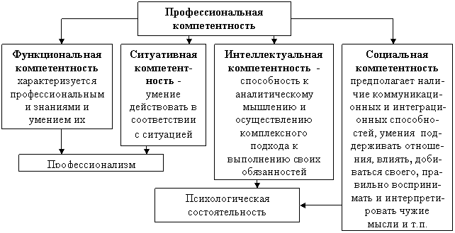 Компетенция - это оценка профессиональной квалификации, включающая социально-психологические характеристики работника (Рис.7.2). Компетенция является характеристикой должности и представляет собой полномочия (права и обязанности), которыми обладает или должен обладать определенный орган и должностные лица согласно законам, нормативным документам, уставам, положениям[102].