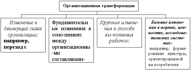 Процесс организационных изменений показан на Рис.11.2. Изменения бывают стратегические и операционные.